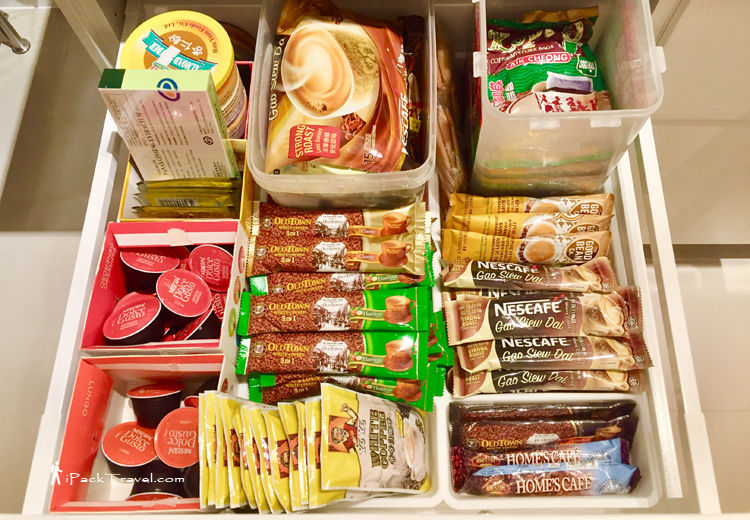 And a drawer filled with 10 types of coffee! From espresso capsules to instant coffees and traditional kopi-O, I can pick any flavours every morning. And I have cinnamon powder and gula melaka (coconut sugar) syrup to add some flavour to my cups of coffee. Come and try some no-sugar instant cappuccino topped with cinnamon powder! I just love coffee.